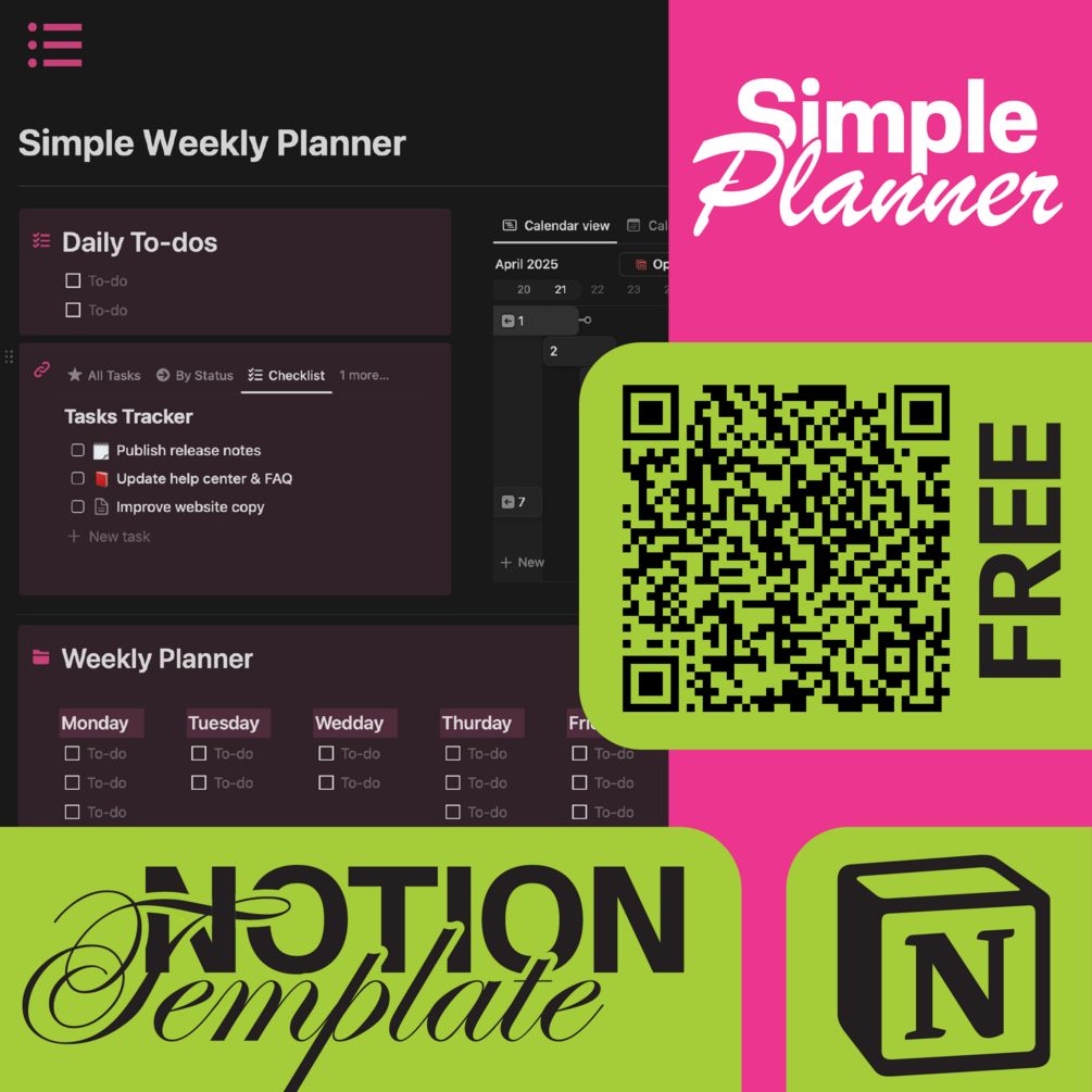 FREE Simple Weekly Planner – Free Notion Template for Daily & Weekly Task Management